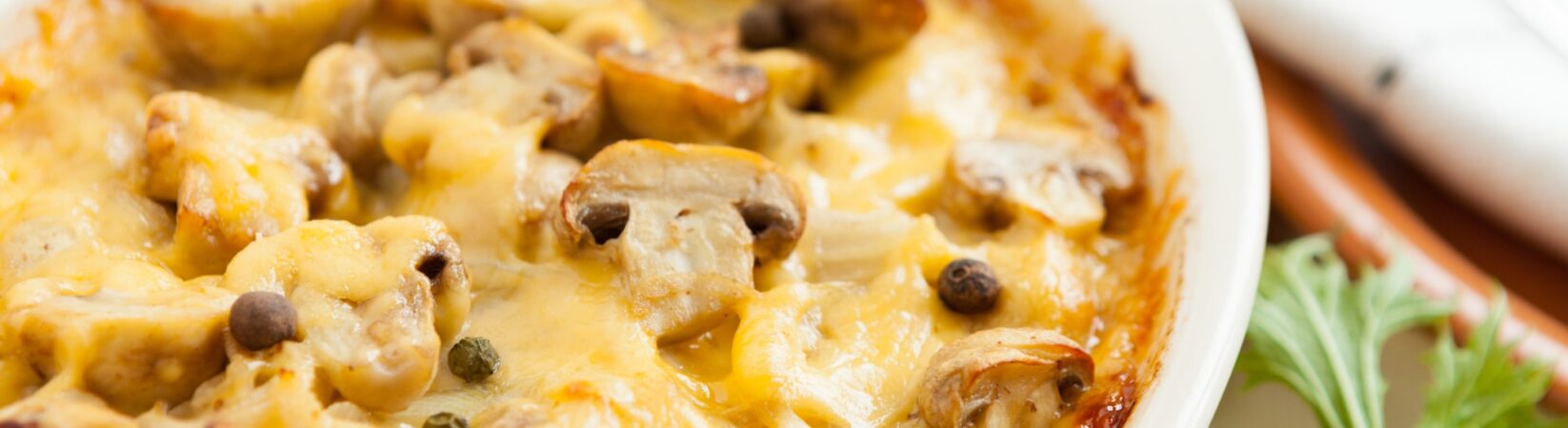 Auflauf mit Soja-Hackfleisch, Champignons und Kartoffeln
