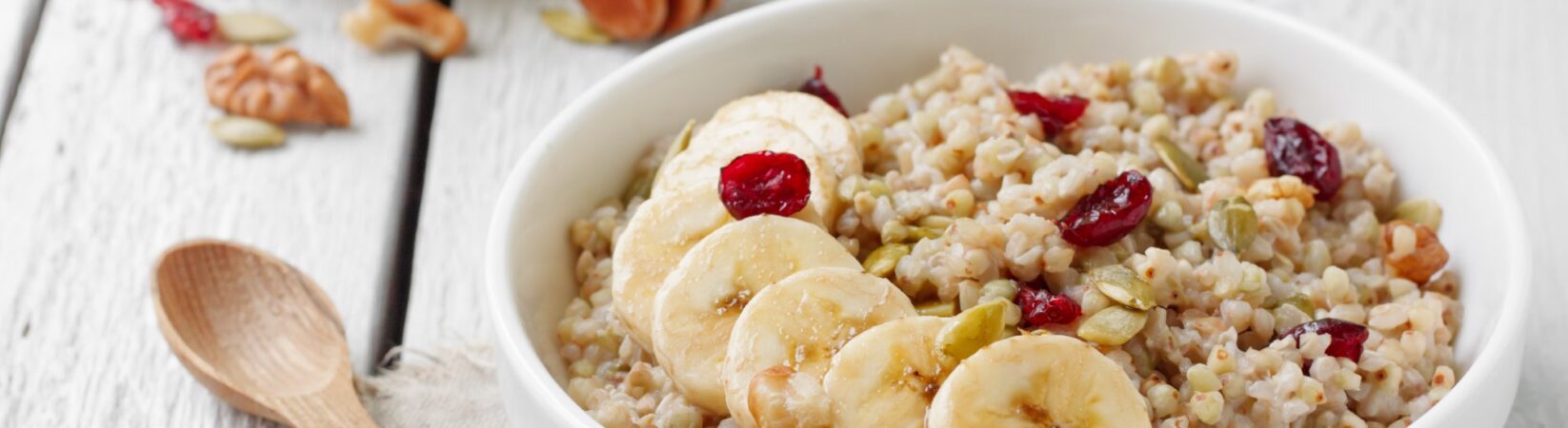 Buchweizenflocken mit Banane, Cranberries und Leinsamen