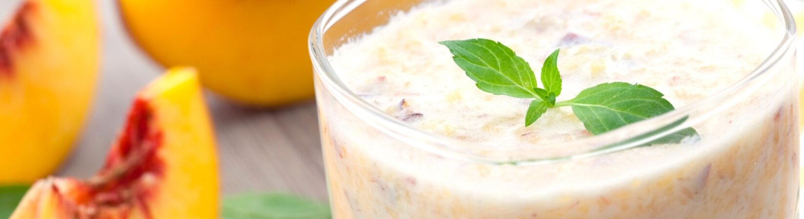 Smoothie mit Erdbeeren, Pfirsich und Banane