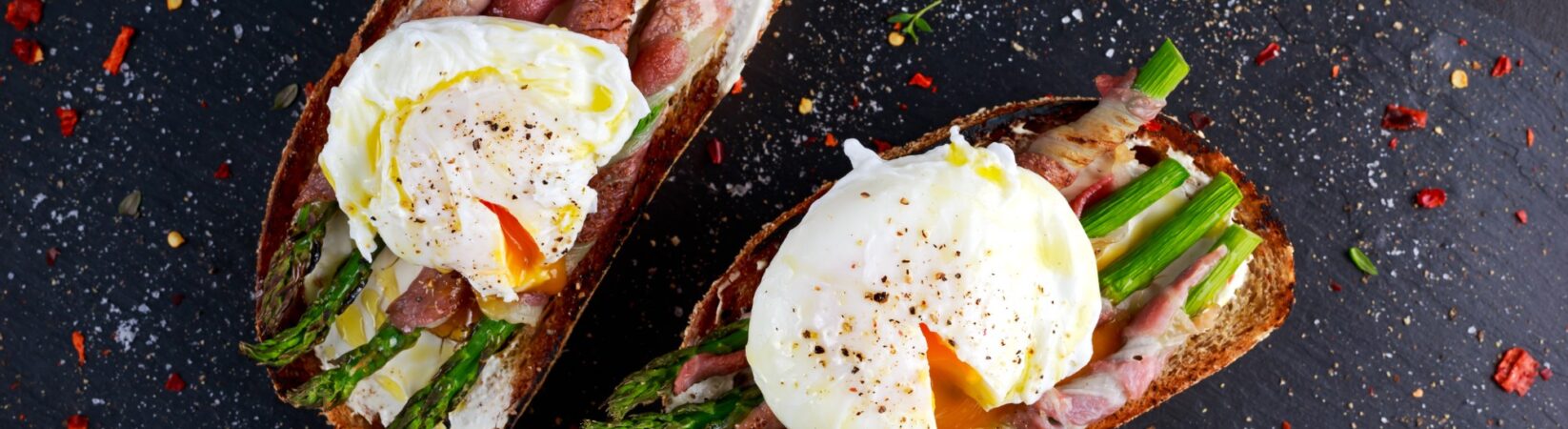 Vollkornbrot mit Spargel im Schinkenmantel und Spiegelei